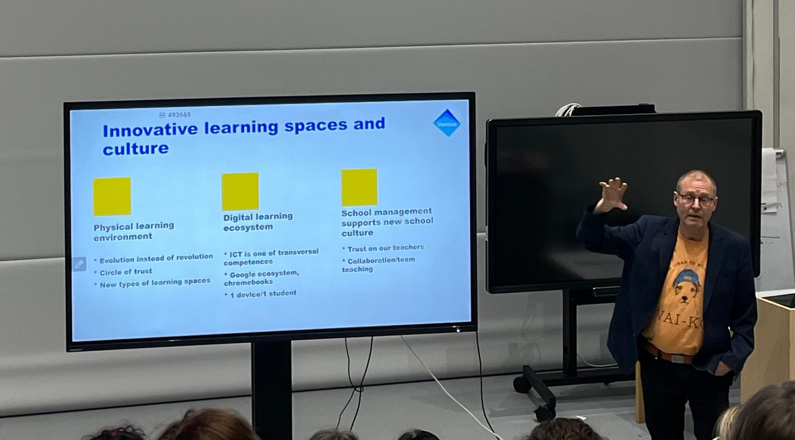 🕔 La presentazione di Petri Ilmonen è stata molto interessante! Petri ha iniziato ad illustrare come la Finlandia, con il suo sistema scolastico, affronta le sfide nel mondo dell'istruzione. Prima però ci ha insegnato qualche parola in finlandese!